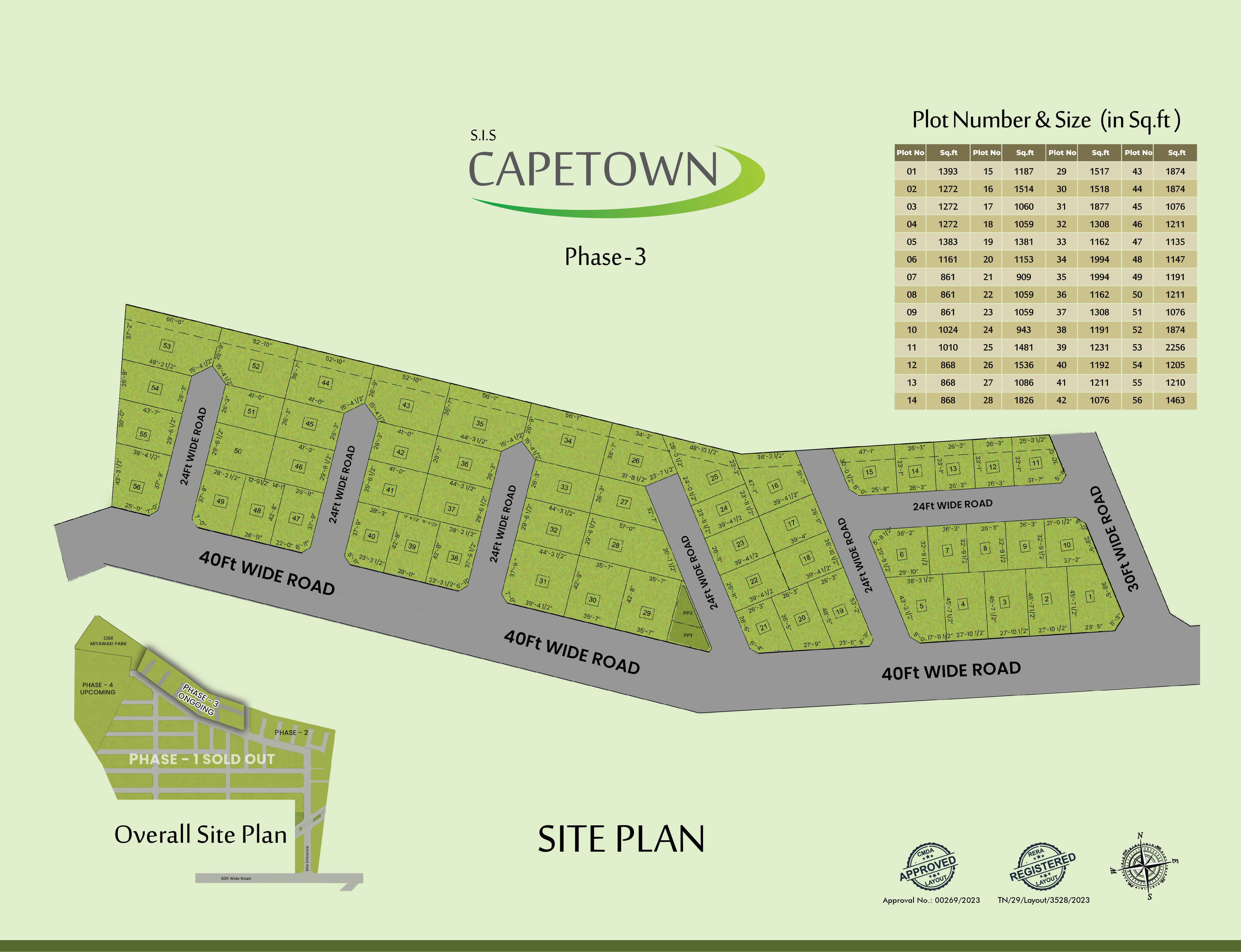 Choice of plot sizes (~646 sq ft up to ~2400 sq ft and above